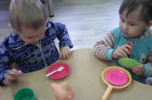 Дети ясельной группы знакомились сегодня с посудой и её назначением.