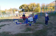 Время тихой осенней поры.Во время дневной прогулки побывали на детской площадке нашего поселка.