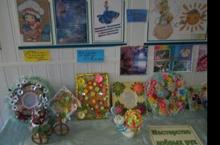 Кружок "Золушка" в фойе школы организовал выставку творческих работ,приуроченных ко Дню Матери.