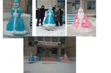 Да вот же они! Стоят около крыльца школы,ждут наступления нового года! Слепили их 9 и 10 классы.