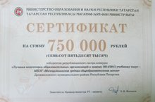 Школа получила сертификат на сумму 750 тыс. р. 15.08.2014