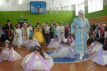 Новый год – самый любимый праздник и взрослых и детей. В преддверии этого торжества мы оказались зрителями на школьном представлении. Праздничная обстановка встретила нас уже на пороге школы. Всюду – гирлянды, снежинки, поздравления. В центре спортивного зала – великолепная красавица-елка. Зал сиял от ярких, искрящихся радостью глаз ребятишек. Как много разных костюмов: феи, снежинки, мишки, зайки, котики. Здесь можно было встретить маленьких принцесс и королевичей, отважных ковбоев и мушкетеров, пиратов и разбойников. А Дедушка Мороз и Снегурочка веселились вместе с ребятами у новогодней елки.