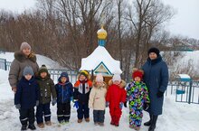 Знакомство детей с народными праздниками является в детском саду одной из форм духовно-нравственного воспитания дошкольников. В старшей группе прошло тематическое мероприятие, посвящённое празднику Крещения Господня. Воспитанники вместе с воспитателем ходили на экскурсию в купальню Николая Чудотворца, которая расположена недалеко от детского сада. Летом здесь наш коллектив сажает цветы, косит траву, следит за чистотой территории.