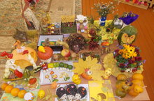 Осень волшебная,красочная пора. Природа радует нас разноцветием своего убранства, богатым урожаем овощей и фруктов. Осенью у нас стал традиционным конкурс поделок детей и их родителей "Королевство овощей и фруктов".