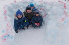 Зима- чудесное время года! Сегодня прекрасный день и замечательная погода. Можно погулять и поиграть в снежки, покататься на горке, ловить снежинки на рукавички. Наши дети любят играть со снегом. Для проведения качественной и насыщенной прогулки, для проведения сюжетных и подвижных игр мы с детьми решили построить снежную крепость. Дети с удовольствием складывали из комьев снега стены крепости. Крепость готова.