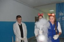 Сегодня члены кружка "Юный химик" устроили для школьников настоящий предновогодний праздник. В программе были следующие фокусы: "Вулкан на столе", "Кровь без раны", "Фиолетовый дым", " Дым без огня", "Гремучий газ", "Хамелеон" и другие. Но самыми эффектными и интересными были фокусы с сухим льдом. В конце представления, зрители поблагодарили членов кружка бурными аплодисментами.