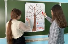Сегодня 11 класс провела акцию под названием "Вместе против СПИДа". В ходе акции предлагали своим всерстникам приклеить красную ленточку на импровизированное "Дерево жизни" .