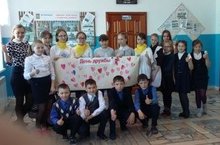 День дружбы начался совсем необычно, так как SMS дети, на пороге школы, раздавали пронумерованные половинки сердец. Каждый обладатель такой половинки должен был найти своего друга, т. е. другую половинку. Затем пара приклеивала сердечко на бумагу. Так проходила акция "Найди друга". Всем очень понравилась акция "Найди друга". Сегодня во всех классах были проведены классные часы на тему "Дружба".