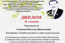 Педагог и родитель нашего детского сада участвовали в республиканском конкурсе чтения стихов Р Минуллина на татарском языке. В итоге воспитатель получила диплом 2 степени, а родитель - диплом 3 степени. Поздравляем и желаем новых творческих успехов!