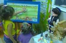 Детям нравятся игры в уголке по национальному воспитанию. Сегодня им предоставили игру на магнитной доске. Это дидактическое пособие, разработанное нами позволяет изучать языки (татарский, русский) и совершенствовать родной чувашский язык. Тема "У кого кто" способствует обогащению словаря, умению называть животных на разных языках.
