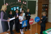 17 сентября в 4 классе классный руководитель Мерчина С.В. провела практическое занятие «Знай правила дорожного движения -как таблицу умножения». Четвероклассники для занятия подготовили дорожные знаки и вопросы викторины для одноклассников. Лучшим знатоком правил дорожных знаков оказался Молгачев Виктор, а умелым художником дорожных знаков - Унискова Диана.