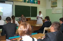 В рамках декады пожилых в школе 26 сентября прошли беседы на нравственную тематику, а в 1 классе встреча-беседа с ветераном педагогического труда, отличником народного просвещения Лухмановым В.П. Виктор Павлович рассказал учащимся о своей педагогической деятельности и отметил, что каждый человек достоин уважения, если он выполняет свое дело с достоинством и любовью.