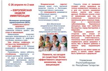 По инициативе Всемирной организации здравоохранения в Европе, в том числе в Российской Федерации и Республике Татарстан в период с 26 апреля по 2 мая 2021г. проводится Европейская неделя иммунизации (далее ЕНИ-2021).