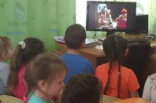 В рамках месячника оборонно-массовой и военно-патриотической работы в детском саду воспитанникам дошкольного возраста воспитатели показали мультфильмы: «Солдатская сказка», "Каша из топора".