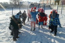 Наступления зимы дети ждут с нетерпением.Зима приносит с собой первый снег, зимние игры и забавы детей. Для детей это самое веселое время года.Дети выбегают на улицу и играют в различные игры.Самая простая и любимая игра-снежинки. Любят дети делать и различные постройки из снега. Но мы сегодня просто играли в снежинки и катались с горки. Было очень шумно и весело, и конечно же было видно как дети дружно играют между собой.