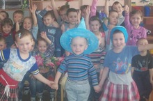 Самый интересный день в году.В этот день все с утра пришли радостные,с интересными прическами,веснушками.Целый день мы шутили,играли,танцевали.Пришли к нам в гости разные герои из сказок,посетил нас и наш любимый герой Незнайка.