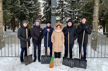 Уборка у монумента воинам-землякам, погибшим на фронтах Великой Отечественной войны 1941-1945 годов.