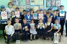 В рамках недели "Внимание дети", члены отряда ЮИД провели беседу с учащимися 1 класса на тему: "Знаки дорожные знать каждому положено". Подарили им памятки безопасного движения на дороге и световозвращающие значки.