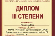 Поздравляем ученицу 3 класса Романову Яну с дипломом 3 степени в Межрегиональной Научно- практической конференции учащихся «Хочу все знать».