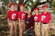 С Днем учителя педагогов- пенсионеров поздравили юнармейцы школы.