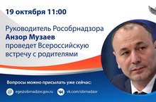 Всероссийская встреча с родителями руководителя Федеральной службы по надзору в сфере образования и науки Анзора Музаева пройдет 19 октября 2020 года в 11:00 мск.