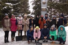 В рамках месячника оборонно- массовой работы учащиеся организовали рейд по уборке территории монумента от снега.