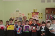 Учащиеся начальных классов изготавливают открытки ветеранам ВОВ, труженикам тыла.