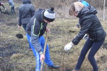 Посадка деревьев.Дорога к обелиску. 25.04.2015
