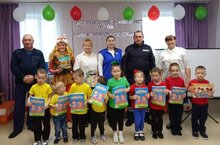Дети получили в подарок, рабочие тетради «Обучение дошкольников числам и счету» и пазлы по ПДД.
