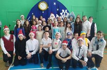 Школьники активно принимали участие в новогодних развлечениях, пели песни, водили хороводы, веселились от души.