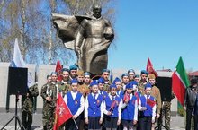 В школе с утра уже чувствовалась особая торжественность. Все ребята в парадной форме, у девчонок - огромные белые банты, на груди у педагогов и обучающихся - георгиевские ленточки. В 10 утра колонной все двинулись к памятнику Солдату-освободителю.