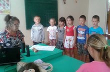 Наши будущие первоклашки вместе со своим первым учителем Светланой Ивановной готовятся к первому сентябрю: учат стихотворения и песни.