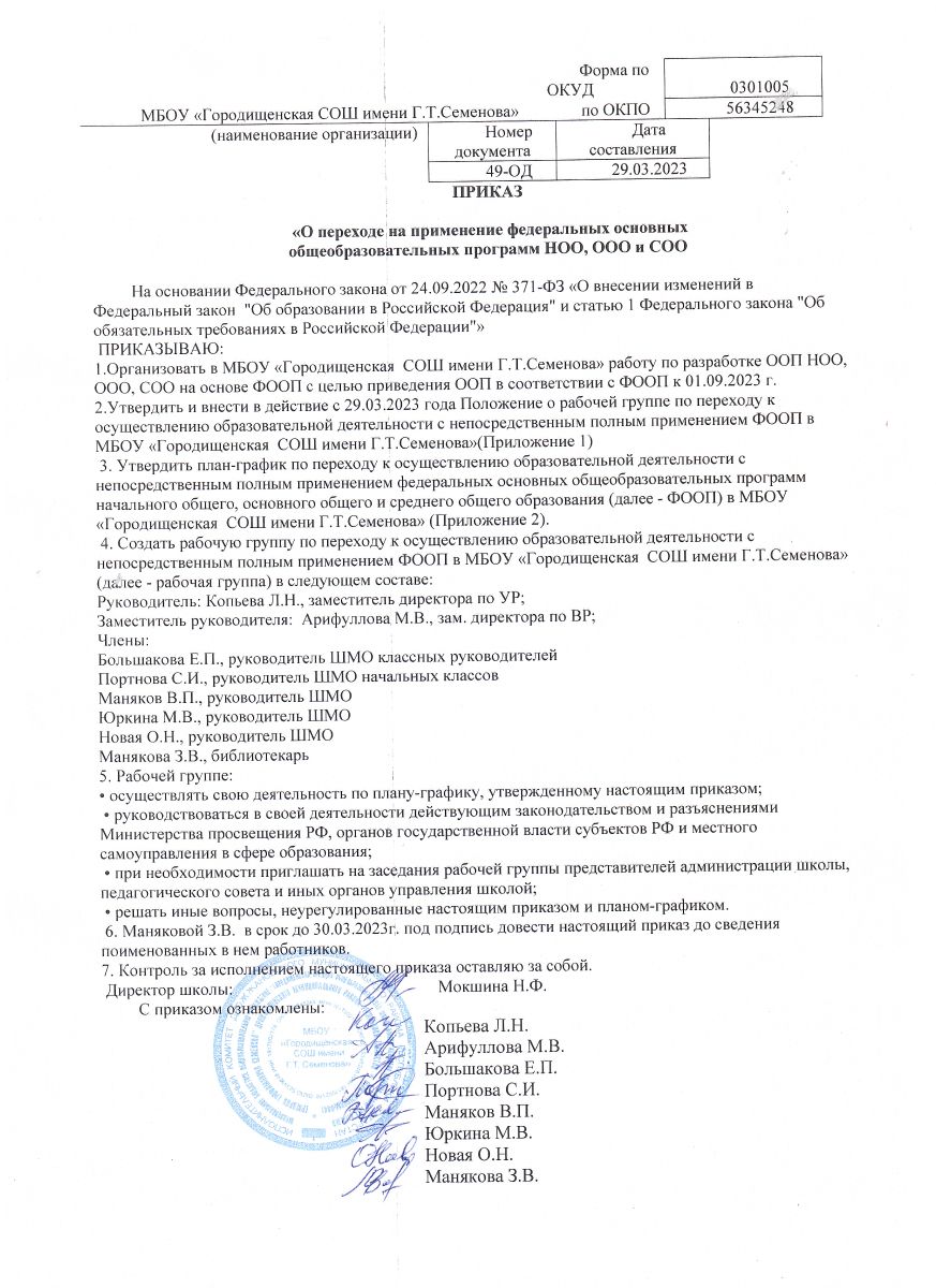 Документы по внедрению ФОП (школьного уровня):