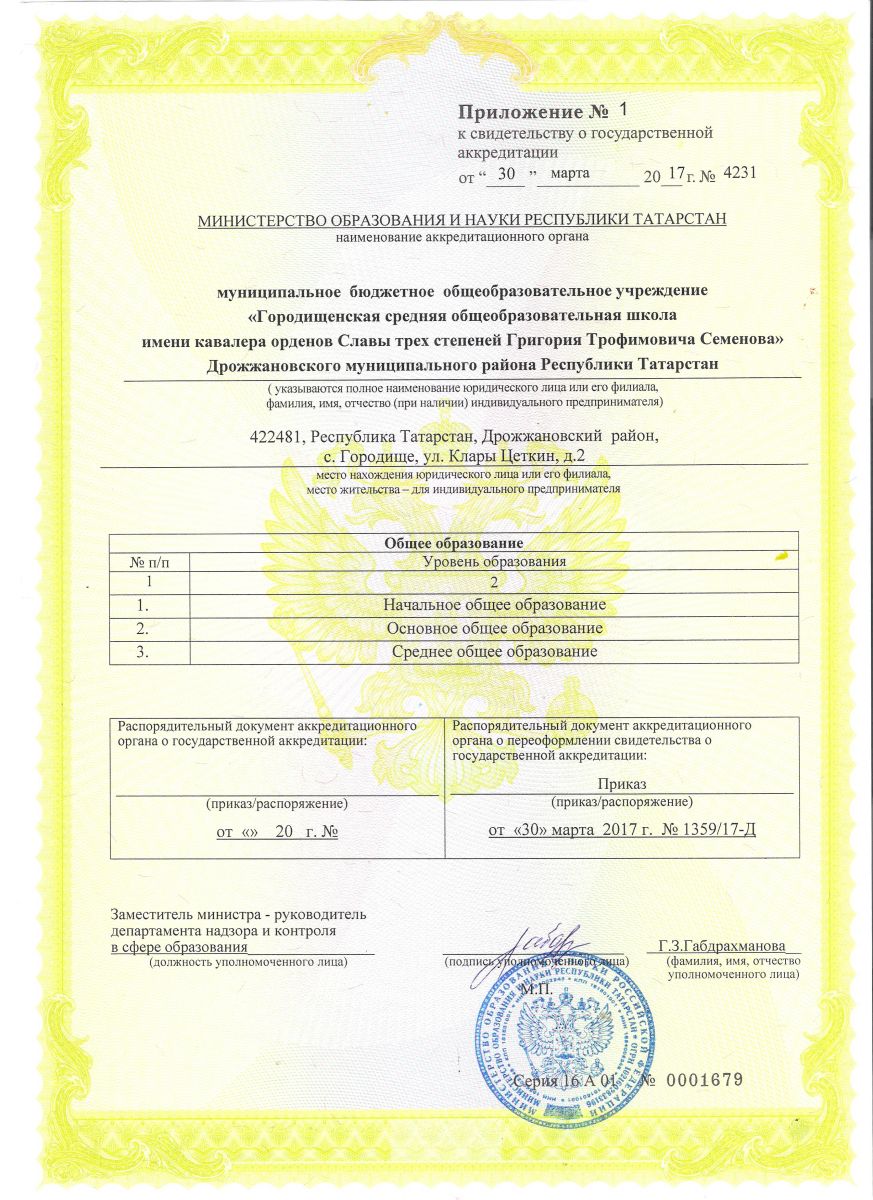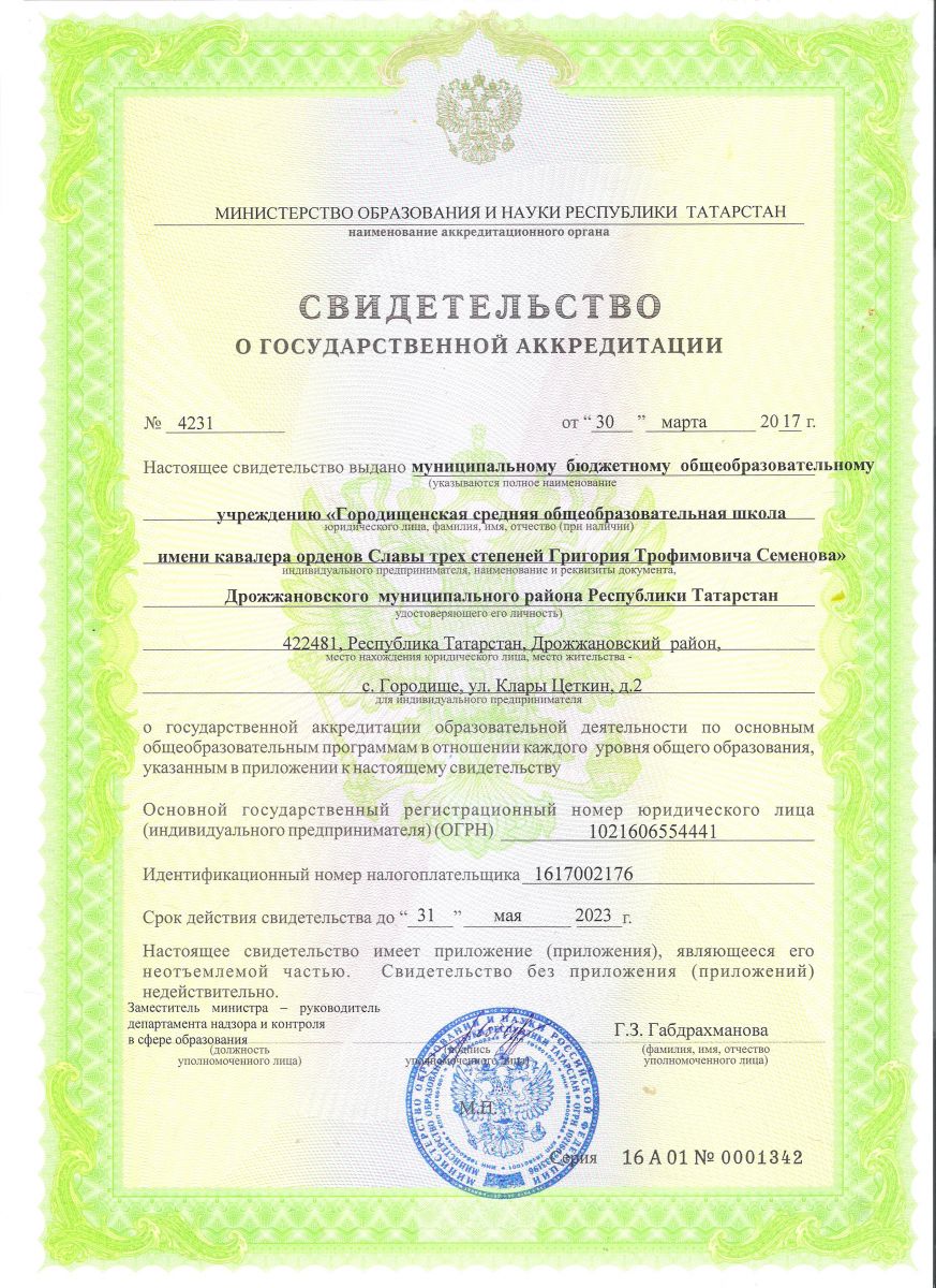 Муниципальное бюджетное общеобразовательное учреждение «Городищенская средняя общеобразовательная школа имени кавалера орденов Славы трех степеней Григория Трофимовича Семенова» Дрожжановского муниципального района Республики Татарстан