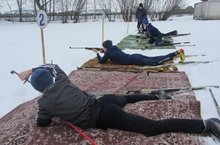 Месячник Гражданско-патриотического воспитания в школе продолжился соревнованием по биатлону.