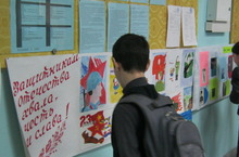 В рамках месячника военнно - спортивных мероприятий были объявлены конкурсы рисунков и стенгазет « Есть такая профессия – Родину защищать!». В конкурсе приняли активное участие учащиеся 1- 4 классов, они рассказали как их отцы, дяди и братья служили в армии. Учащиеся 5-7 классов нарисовали плакаты к празднику.