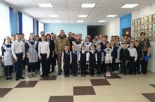 В рамках мероприятий, посвящённых Году защитника Отечества, в школе прошла встреча с участником специальной военной операции, выпускником школы Хайрулловым Р.Ф.