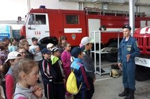 Воспитанники летнего оздоровительного лагеря «Планета» и лагеря труда и отдыха «Звезда» побывали в диспетчерской пожарной части, куда поступают тревожные звонки. С огромным желанием и восхищением дети рассматривали пожарные машины, аварийно – спасательное оборудование.