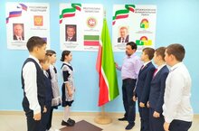 В школе День государственного флага Республики Татарстан начался с церемонии торжественного поднятия флага и исполнения гимна. Во второй половине дня прошли классные часы "Татарстан - моя Республика". Школьники узнали о значении флага, его истории, о цветах флага: зеленом, символизирующем жизнь и природу; красном, олицетворяющем смелость и решимость; и белом, олицетворяющем мир и чистоту. Ребята принимали активное -