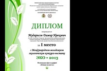 Ученик 11 класса МБОУ "Марсовской СОШ" участвовал на Международном молодежном экологическом конкурсе "ЭКО-2013». и занял 1 место