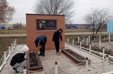 Почтив память погибшего минутой молчания, собравшиеся возложили к Мемориальной доске и школьному мемориалу Памяти цветы.