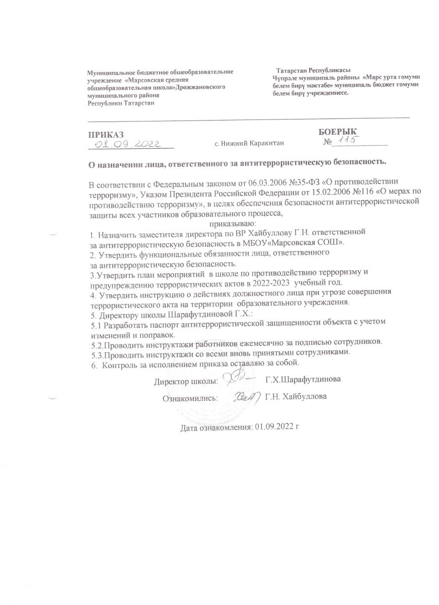 приказ о назначении лица, ответственного за антитеррористическую безопасность