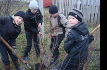 Ученики 5 класса посадили плодовые деревья на пришкольном участке (30.10.13г.)