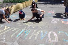 Когда рисуют на асфальте дети!Без асфальтта рәсем ясыйбыз, Түгел, дәфтәр, парта түгел! Барлык рәссамнар-ышаныгыз, Балалар асфальтта рәсем ясый икән!