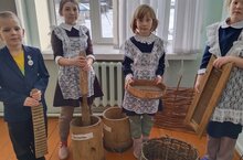Сегодня снова были в музее.Учащиеся при знакомстве с татарским искусством рассматривали предметы быта.интересными образцами прошлого столетия, которые бережно сохраняются и развиваются многовековые национальные традиции.Всем было интересно,как с этими предметами работали наши пробабушки и продедушки.Было очень много вопросов и ответов.