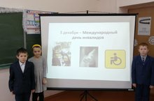 3 декабря – Международный день инвалидов. В связи с этим в школе в 1-3 классах была проведена беседа и показана презентация о Международном дне инвалидов, который напоминает всем о нуждающихся в поддержке и помощи, но в тоже время мужественных, крепких духом людях, проявляющих таланты в профессиональном мастерстве, изобразительном, самодеятельном творчестве, спорте.