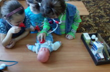 В детском саду мы любим играть в сюжетно-ролевые игры.Детям очень нравиться играть ,но в врача любят побольше.Например Мадина и Алия хотят стать врачом,когда вырыстут.Практическое применение сюжетно-ролевых игр в эксперименте способствовало увеличению объема словаря, навыков словоизменения и словообразования у детей.