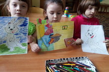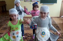 В детском саду мы не только читаем и смотрим,но и сами инсценируем разных сказок.Вот сегодня дети сами хотели ставить сказку про трёх поросят.Мадина-Ниф,Ризиля-Няф а Алия Нюф.Самые маленькие с большим интересом смотрели.Всем очень понравилось и остались довольными. -