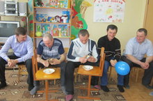Сегодня мы в нашем детском саду отмечали праздник Защитника Отечества. На праздник пригласили пап наших воспитанников. Папы с удовольствием приняли наше приглашение и активно участвовали на празднике. Для них мы приготовили конкурсы - они почистили картошку, зашили пуговицу, пеленали детей, нарезали лапшу. А дети болели за своих пап.Праздник всем понравились и все получили большой заряд эмоций. -