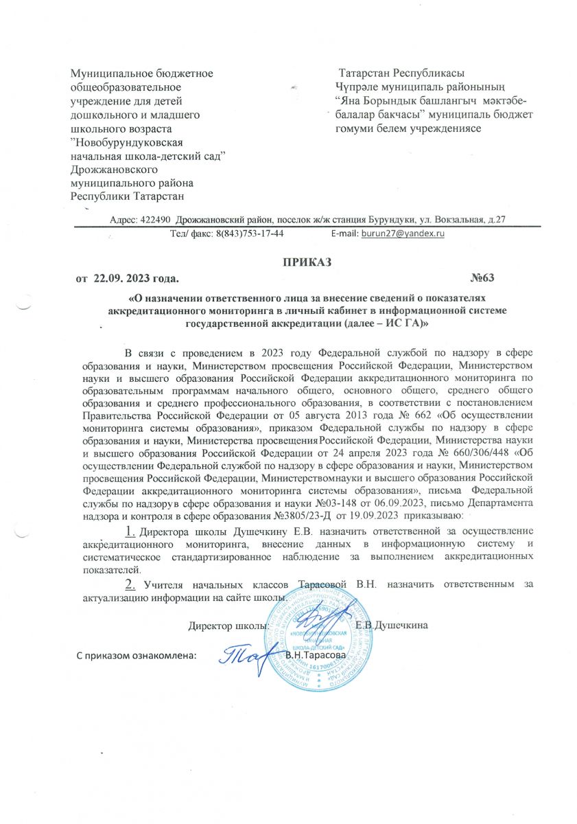 Приказ о назначении ответственного за подготовку и проведению аккредитационного мониторинга